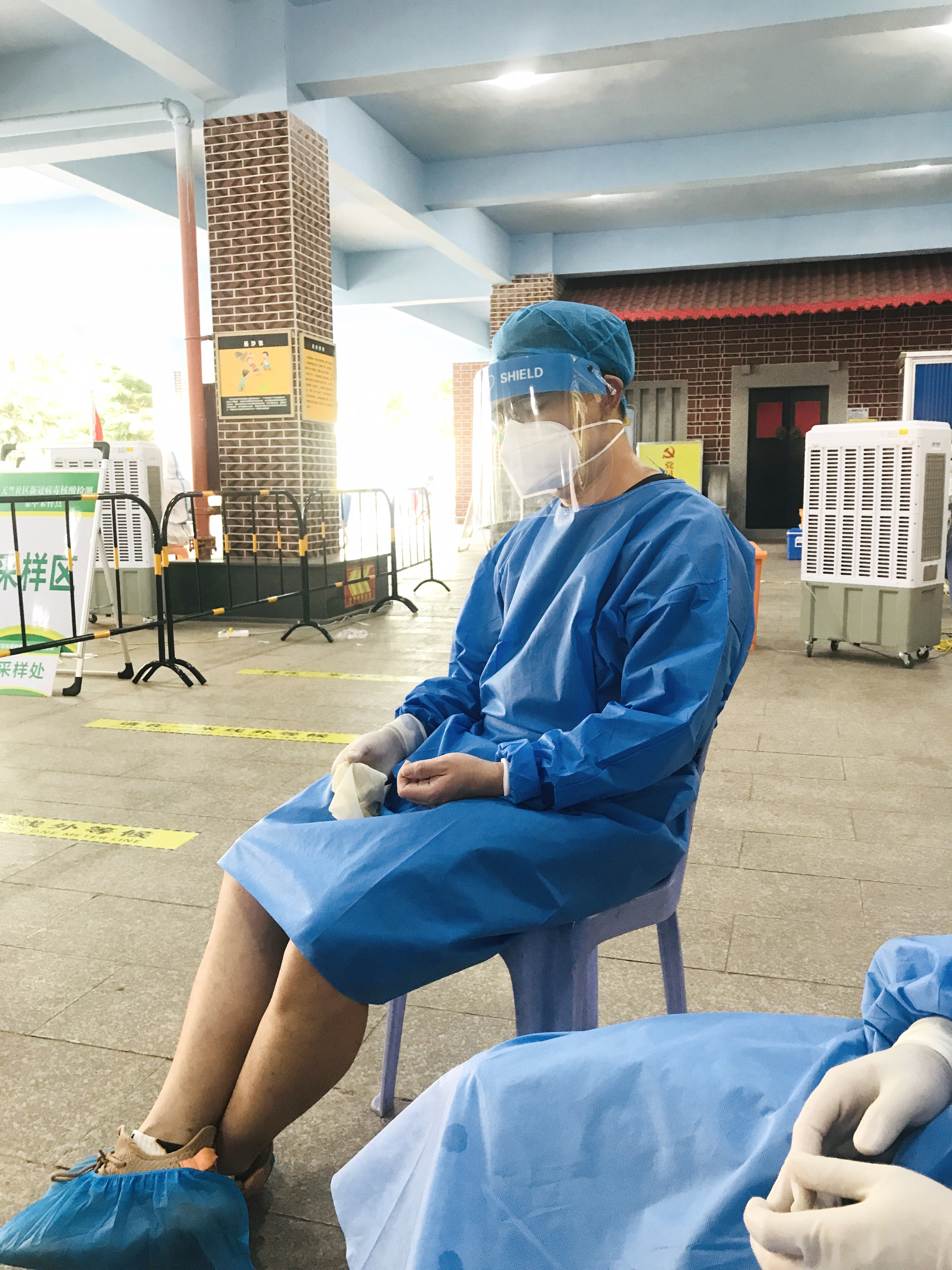 也有剛下完夜班即投入志愿服務(wù)的小伙子…
