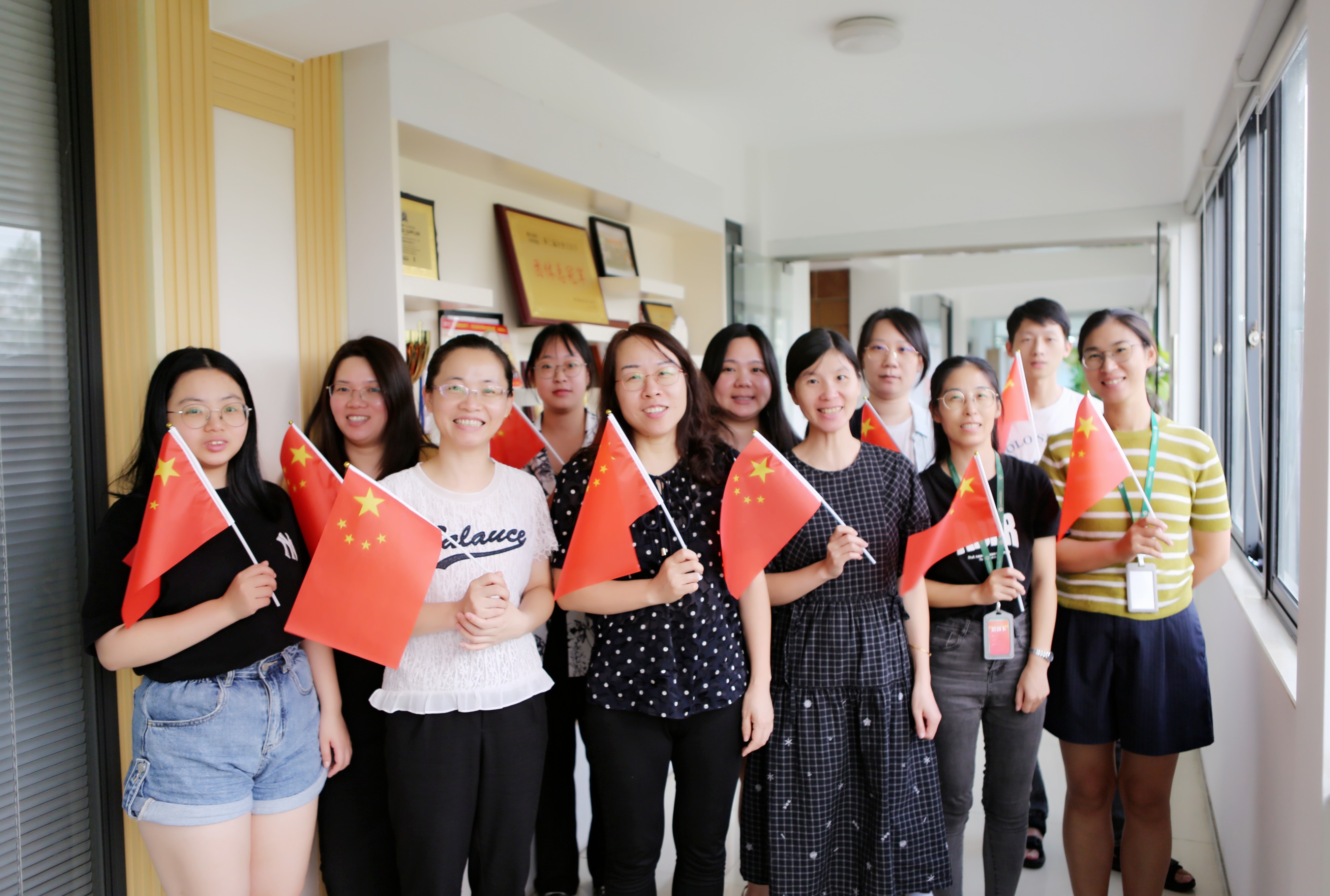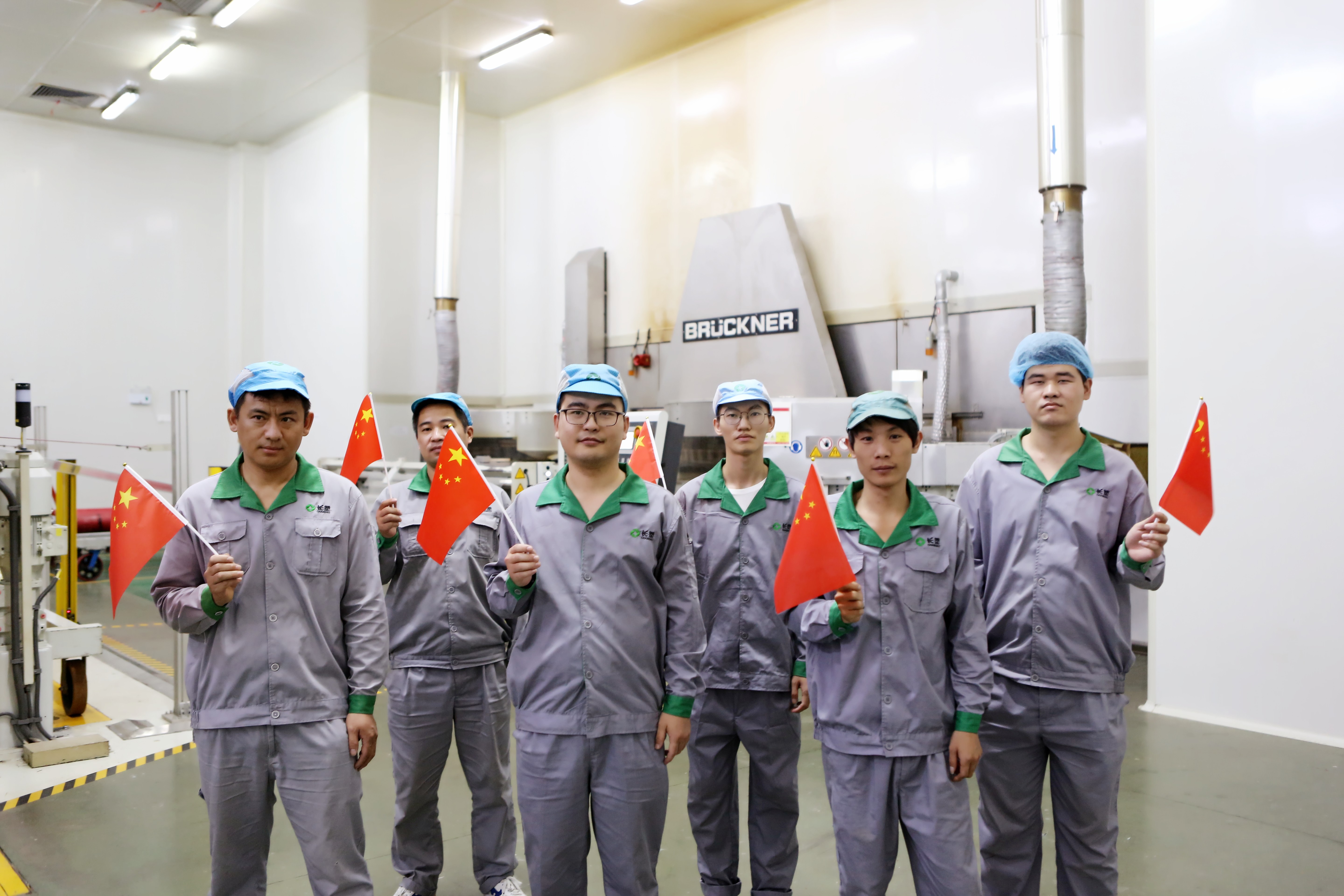 中侖塑業檢測課的伙伴們,負責過程及成品檢測、原輔料檢測、污水和公用介質水質的檢測工作,他們用最質樸的方式向祖國致以節日的問候。
